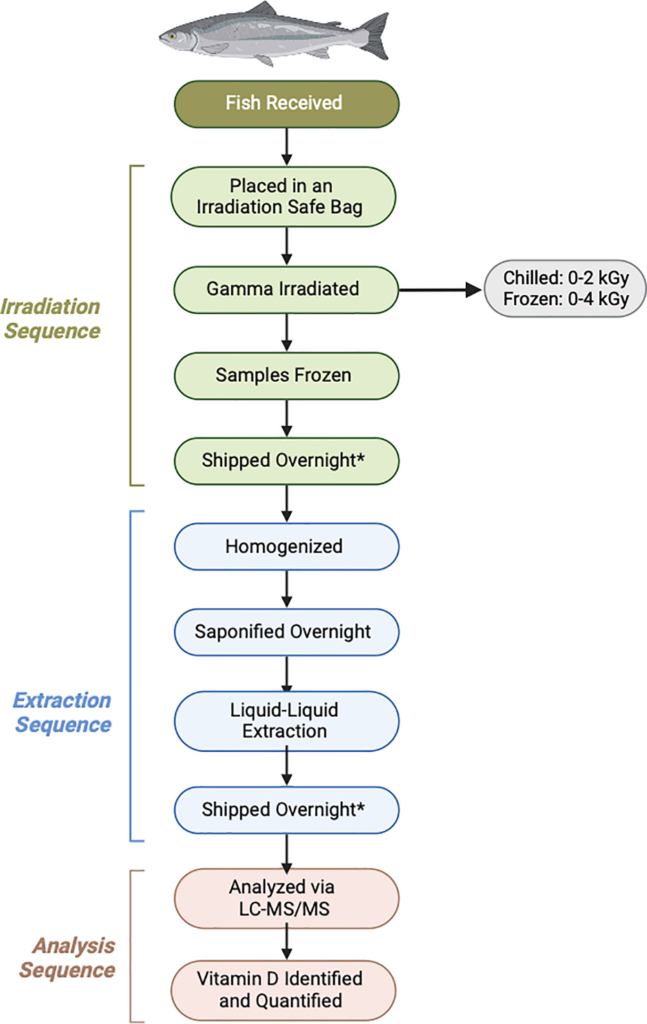 Công trình nghiên cứu của Brown và cộng sự (năm 2025) đã cung cấp những dữ liệu quan trọng nhất về vấn đề này. Nhóm nghiên cứu đã sử dụng nguồn Cobalt-60 để chiếu xạ các mẫu cá hồi (Salmon) và cá hồi tẩm (Trout) ở các mức liều lượng khác nhau. Dữ liệu cho thấy khi cá hồi được chiếu xạ ở trạng thái làm mát (4oC), nồng độ vitamin D bắt đầu giảm đáng kể khi liều lượng vượt quá 0.5 kGy. Ngược lại, cá hồi tẩm (Trout) lại cho thấy một độ ổn định đáng kinh ngạc, không có sự thay đổi đáng kể về hàm lượng vitamin D ở liều lượng lên tới 2 kGy trong cùng điều kiện.