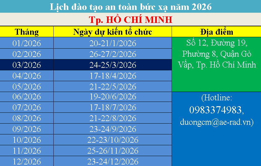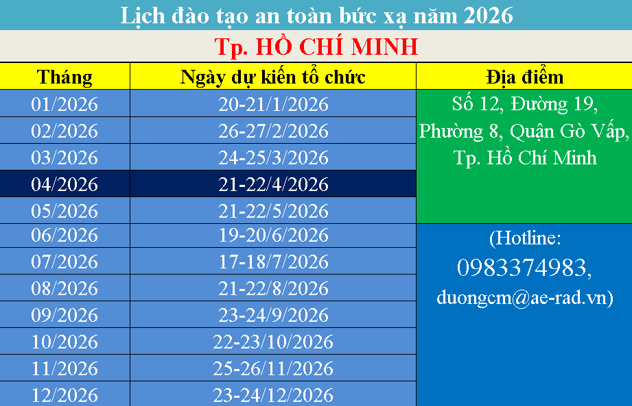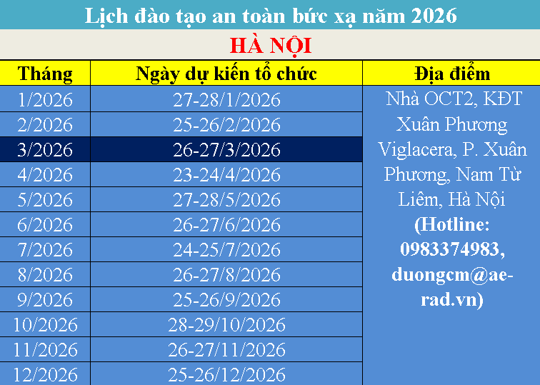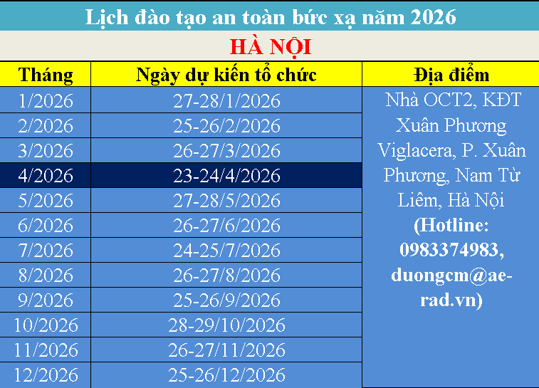 2. Lịch đào tạo an toàn bức xạ tập trung năm 2026