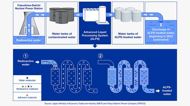 Xử lý nước lò phản ứng Fukushima (ALPS) loại bỏ đa đồng vị phóng xạ (kể cả Cs, Sr, I, Co…), tuy nhiên triti (HTO) vẫn còn lại trong nước.